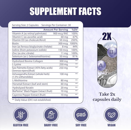Lustriva Hair Growth Booster Supplement - 160mg Biotin per Day - Non-GMO, Gluten Free - 60 Capsules