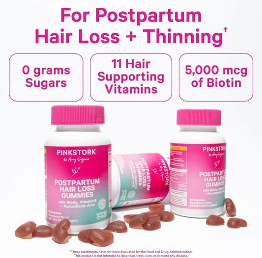 Postpartum Hair Loss Gummies with Biotin, Vitamin E, Pantothenic Acid, B6 & B12 - Supports Hair, Skin, and Nails - Essential for New Moms - 60 Gummy Vitamins