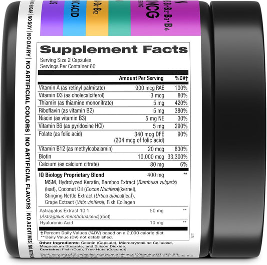 Biotin 10,000 mcg Supplement with Collagen & Keratin for Hair Growth - Hair Skin and Nails Vitamins for Men & Women - Promotes Healthy Regrowth, Skin Glow & Nail Repair - 120 Capsules