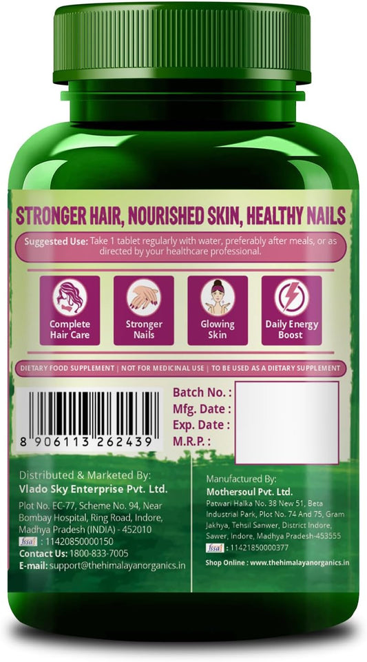 Himalayan Organics Biotin 10000 MCG Supplement with Keratin, Amino Acids, and Multivitamin - 120 Vegetarian Tablets for Healthy Hair, Skin, and Nails