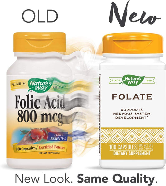 2-Pack Nature's Way Folic Acid 800mcg Capsules - 100 Count