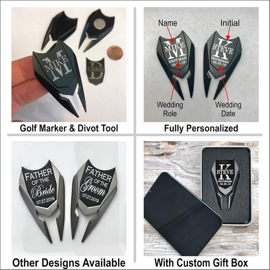 Personalized Engraved Golf Ball Marker and Divot Repair Tool Set - Custom Magnetic Groomsmen Gift for Best Man