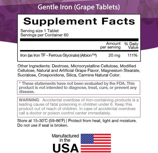 Bariatric Eating Gentle Iron Grape Melt Tablets - 30mg (60 Count) for Easy Iron Absorption