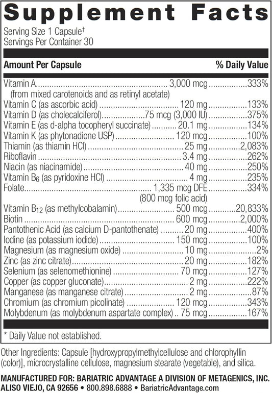 Bariatric Advantage Ultra Solo Multivitamin Capsules Without Iron - One-a-Day Formula for Bariatric Patients - Includes Thiamin, Vitamin A, and More - Gluten-Free - 30 CountVendor:Bariatric AdvantageRegular price $126.84 AUDRegular priceUnit price per-