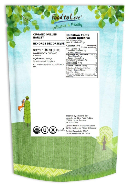 Organic Hulled Barley Bulk - Non-GMO, Whole Grain, Vegan, Kosher - 3 lbs - High Fiber for Brewing, Grinding, Chili, Cereal, Salads, Soup