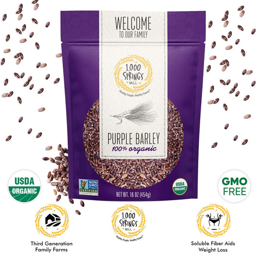 Organic Purple Barley - Versatile Bulk Dried Grain for Cereals, Salads, Bread, and More - 16oz Resealable Bag - 1000 Springs Mill