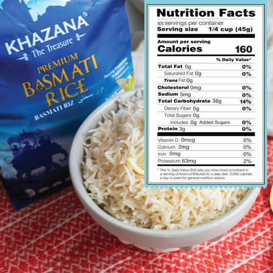 Khazana Authentic Premium Basmati Rice - 10 lb Bag - Aromatic & Flavorful Indian Grain - Non-GMO, Gluten Free, Kosher, Cholesterol Free - Buy Now!