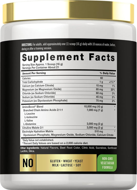 Carlyle Fruit Punch BCAA Amino Acids Pre Workout Powder - 7g BCAA, Stimulant Free, Non-GMO & Gluten Free Supplement
