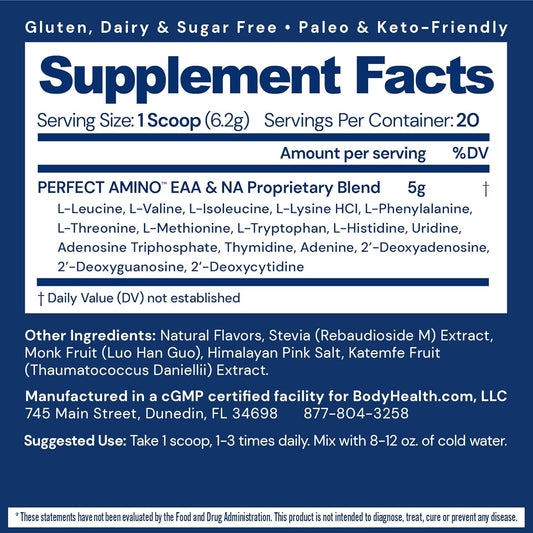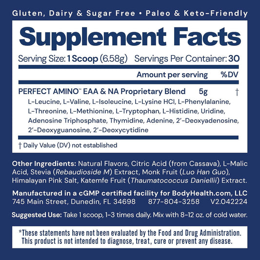 Mixed Berry BodyHealth PerfectAmino Powder - BCAA and EAA Energy Drink for Lean Muscle and Recovery - Pre and Post Workout Amino Acid Powder for Men and Women - 30 Servings
