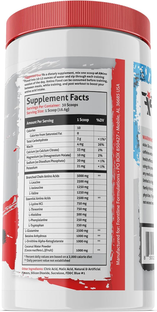 Frontline Formulations Amino Flood: BCAA and Essential Amino Acid Blend for Muscle Building, Comprehensive Formula, Blue Cherry Slushie Flavor