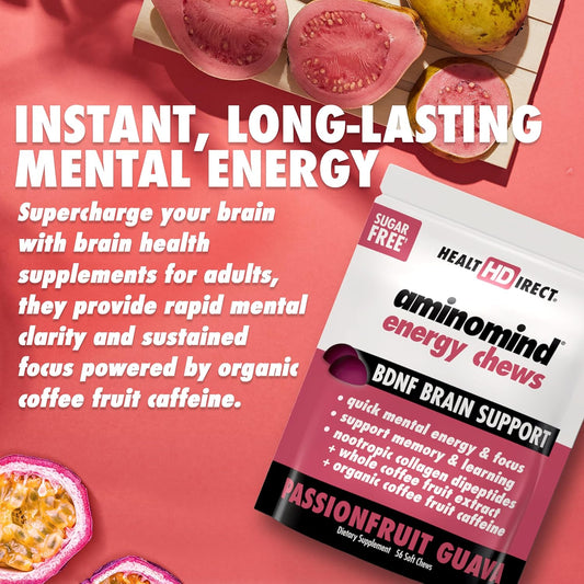 AminoMind Energy Chews - Passionfruit Guava Flavor - 56 Chews - Supports Cognitive Function