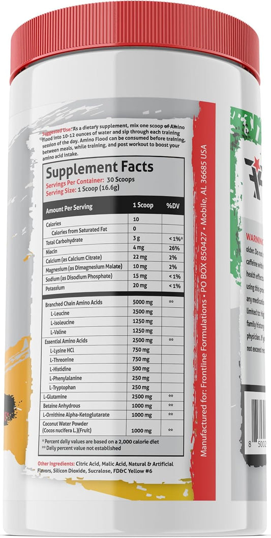 Frontline Formulations Amino Flood: BCAAs and Essential Amino Acids, Muscle Building Formula with Great Taste, Veteran Owned (30 Servings)