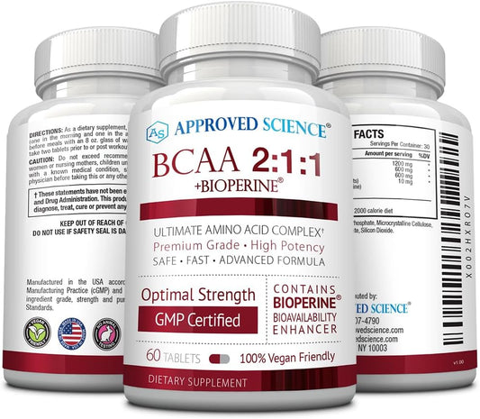 High Potency BCAA Supplement Tablets - 180 Count - 2400mg - Boost Performance and Muscle Growth - L-Leucine, L-Isoleucine, L-Valine - USA Made, Non-GMO