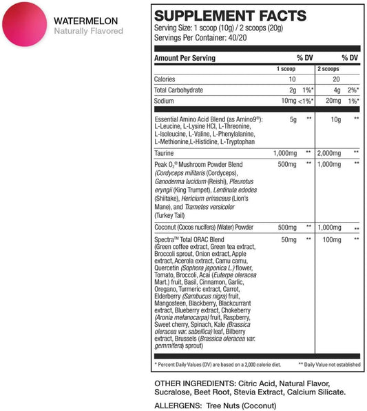 IntraHD Essential Aminos Supplement - Watermelon Flavor | 10g EAAs, 100mg Spectra, 1g Coconut Water Powder | Intra Workout Recovery | 40/20 Servings