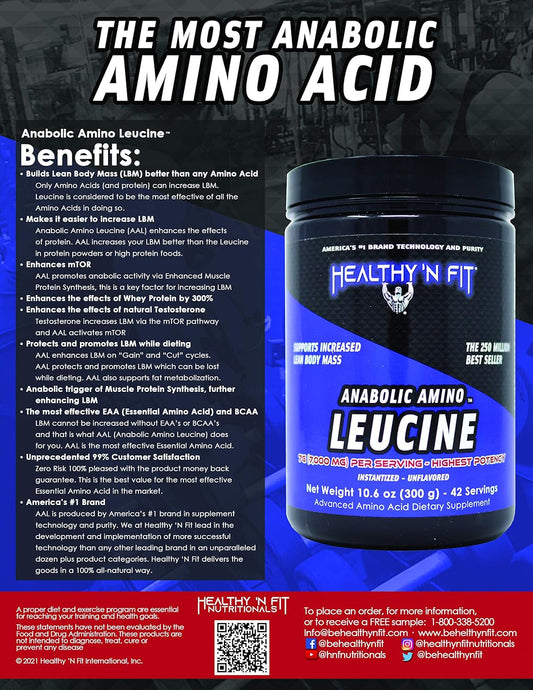 Pure Instant L-Leucine Powder - 300g (42 Servings) by HEALTHY 'N FIT Anabolic Amino