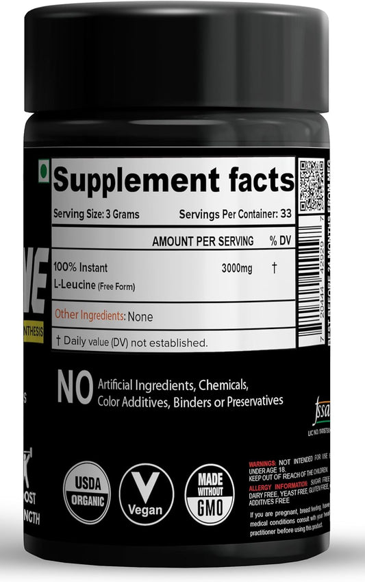 Pure USP Grade NutriJa Instant L-Leucine Powder for Muscle Growth & Recovery - Fast Dissolving Formula for Rapid Absorption & Enhanced Bioavailability