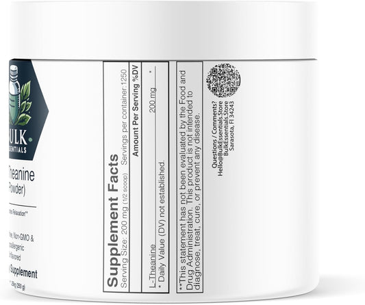 Premium Bulk L-Theanine Powder Supplement - 200mg Amino Acid - Pure & Gluten-Free - 250g Supply