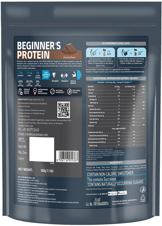 Chocolate Whey Protein Powder for Beginners - 500g - No Added Sugar - Enhances Muscle Recovery and Strength