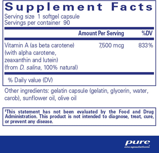 Hypoallergenic Beta Carotene Supplement with Mixed Carotenoids for Antioxidant Support - 90 Softgel Capsules