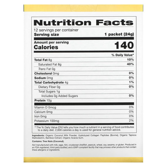 Unsweetened Collagen Coconut Creamer by California Gold Nutrition - 12 Packets, 0.85 oz Each