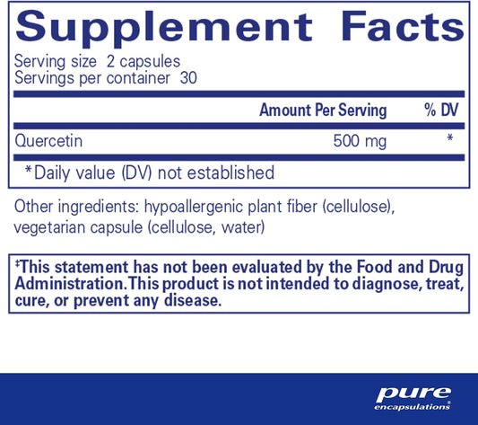 Pure Encapsulations Quercetin Capsules - 500mg - Supports Immune System, Cellular & Heart Health - Antioxidant Supplement - Gluten Free & Non-GMO - 60 Count