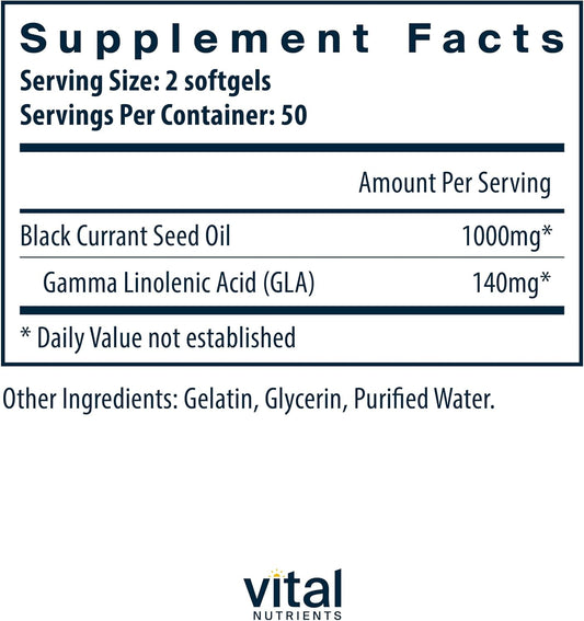 Black Currant Seed Oil Softgels - Rich in Omega 6 Fatty Acids with GLA - Supports Cartilage, Joints, and Nerves - 100 Capsules
