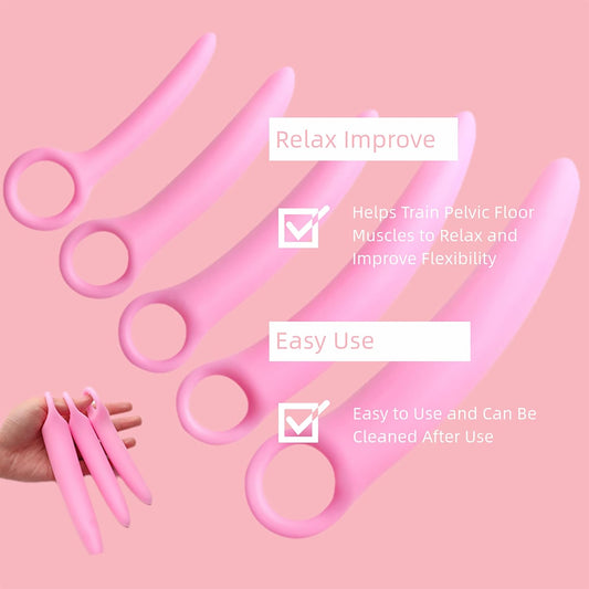 Silicone Dilator Set with Handle - Medium Sizes 3-6 - Vaginal Dilators for Pelvic Floor Therapy and Pain Relief