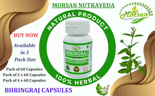 Morsan Nutraveda Bhringraj Capsules for Men and Women - Premium Ayurvedic Herbal Supplement - 500mg per Serving - 60 Veggie Capsules x 4-Pack