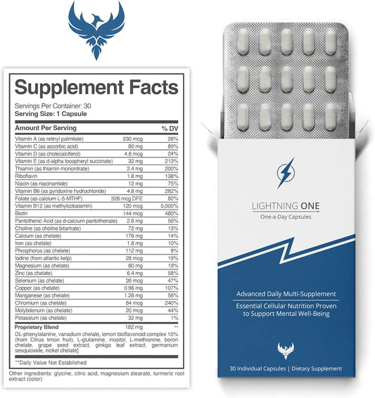 Renova Worldwide Lightning One Advanced Brain Support Supplement - Optimal Brain Function & Focus - Once-a-Day Energy Boost - Ultra-High Concentration - 30 Capsules