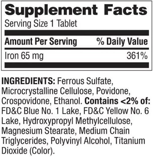 Iron Dietary Supplement Tablets for General Wellness - 65 mg, 100 Count