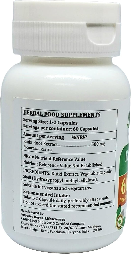 Satya Naturals Kutki Forte Capsules 500mg - Ayurvedic Herbal Supplement for Men and Women - Picrorhiza Kurroa Extract - 10:1 Forte - 60 Veg Capsules