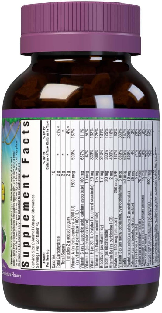 Bluebonnet Super Earth Rainforest Animalz Multiple Chewable - 90 Count - Light Grey/Purple - Kids Multivitamin Supplement