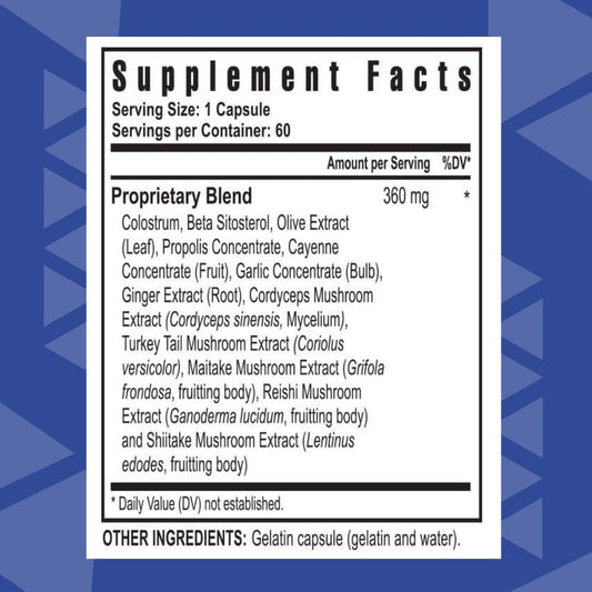 Natural Immunity Support Supplement with Bee Propolis, Mushrooms & Colostrum - 60 Capsules for Immune System Boost