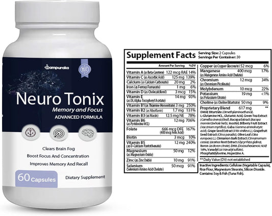 NeuroTonix Memory and Focus Supplement - Advanced Formula 60 Capsules