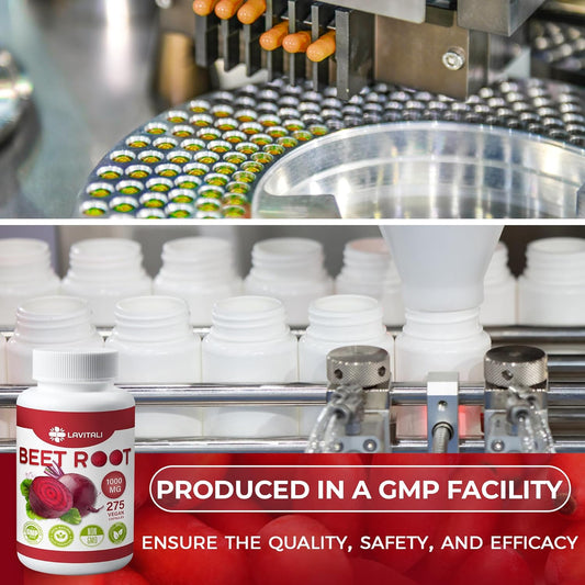 High Concentration 1000mg Beet Root Extract Capsules - 275 Caps, Gluten-Free & Vegan - 100% Pure & Natural
