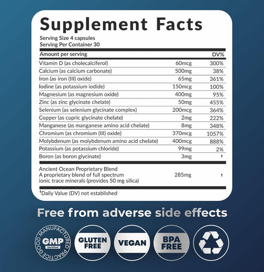 Immune Support Multimineral Supplement with Magnesium Complex, Potassium, Calcium, Vitamin D, Zinc, Copper, Boron - 120 Capsules