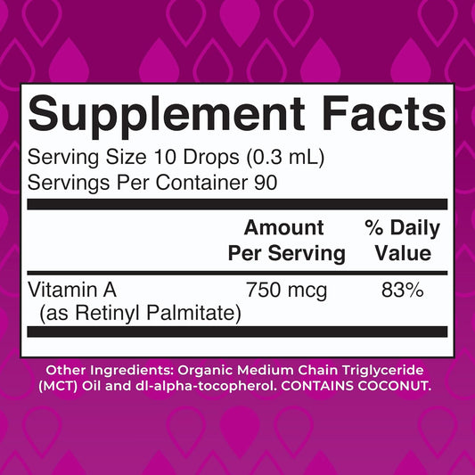 USDA Organic Vitamin A Liquid Drops for Immune Support, Eye & Skin Health | 3 Month Supply | 750mcg per Serving | Vegan, Non-GMO, Gluten Free | Sugar Free | Ages 14+ | 1oz