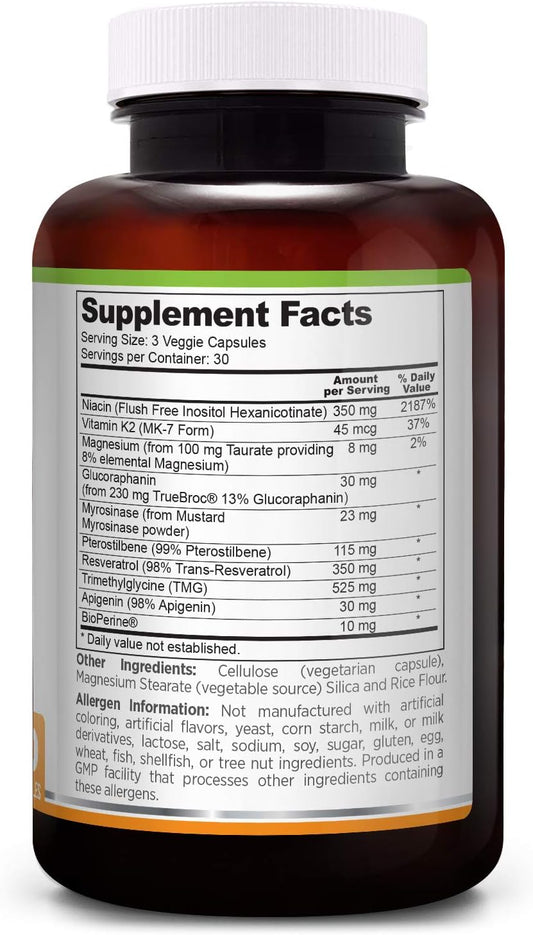 Sun Nutritionals Age Defense Supplement with Sulforaphane Glucoraphanin, NAD+ Apigenin, Niacin, TMG, Pterostilbene, Trans-Resveratrol, Vitamin K2, Magnesium - 90 VCaps