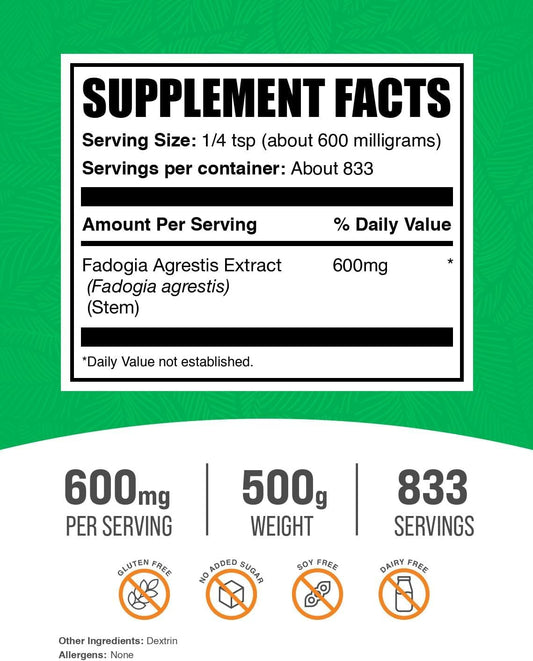 High-Quality Fadogia Agrestis Extract Powder - Energy Boost Supplement, Gluten Free, 600mg per Serving - 500g (1.1 lbs) Pack