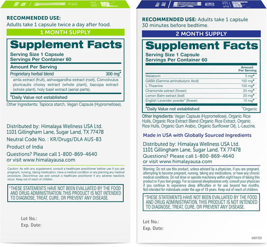 Himalaya Mood Boost & Focus Combo: Ashwagandha for Joyful Mood & Bacopa for Alert Mind, Herbal Supplement, 60 Capsules