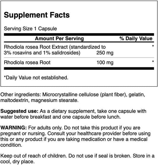 Natural Energy Boost Supplement - Swanson Rhodiola Rosea Extract Capsules (60 Count)