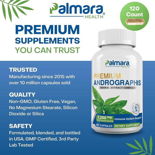 Premium Andrographis Paniculata Extract Capsules - 1,200mg with 100mg Andrographolides - Non-GMO, Vegan, Gluten Free - 120 Count
