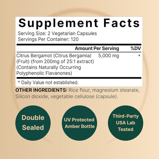 NatureBell Citrus Bergamot Extract 5000mg, 240 Capsules - High Antioxidant Level, Heart & Immune Support, Vegan, Non-GMO - Extra Strength Fruit Supplement
