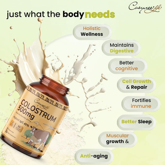 Freeze Dried Colostrum Supplement - 180 Capsules | 40% IgG Immunoglobulins | 1,200mg Per Serving | Grass Fed Bovine First Milk | Organic