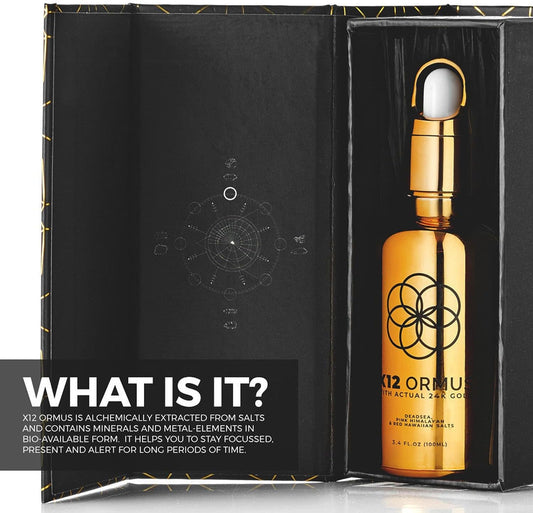 High Potency x12 Ormus Monoatomic Gold Concentrate with 24k Gold - 3.4oz Liquid Gold Made by Real Alchemists - Dead Sea Salt & Pink Himalayan Salt Included