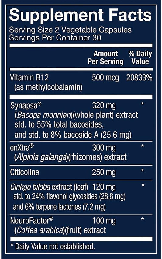 Vthrive Nootropic Formula for Cognitive Health and Brain Function - 60 Vegetarian Capsules