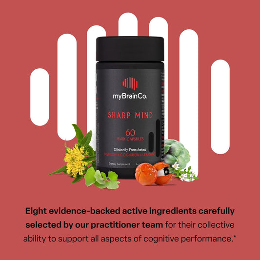 SHARP MIND Brain Supplement with Rhodiola & Ginkgo Biloba - Improve Mental Focus & Recall - Cognitive Fatigue Reduction - 60 Capsules by myBrainCo