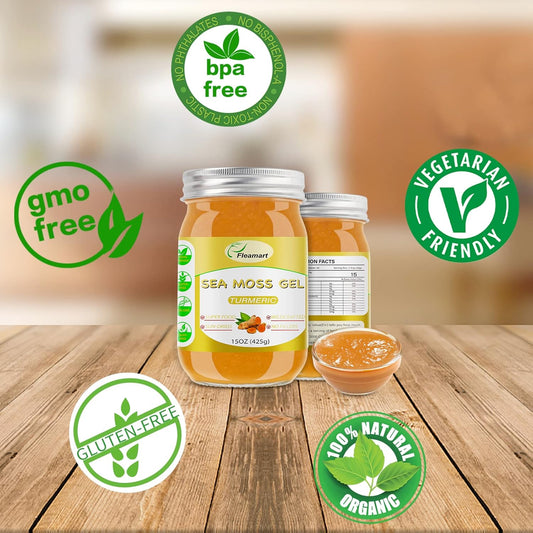 Organic Wildcrafted Raw Sea Moss Gel with Turmeric Flavor for Immune Support & Thyroid Health - 15OZ Gel Packed with Minerals & Vitamins