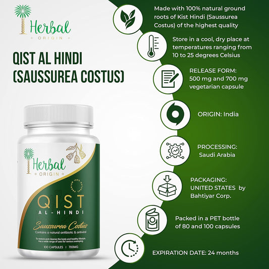 Premium iHerbal Saussurea Costus Root Supplement in Vegan Capsules - 80 Capsules, 700MG - Qist al-Hindi Herbal Origin