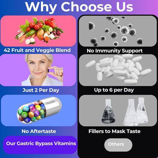 Gastric Bypass Vitamins with Iron & Super Fruits/Vegetables for Post-Bariatric Surgery - Quick-Dissolve Gel Capsules